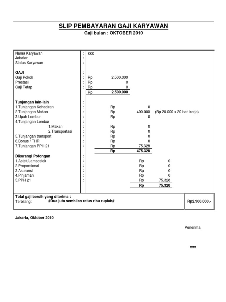 7 Contoh Slip Gaji Karyawan Di Word Excel Terlengkap Pintarjualan Id