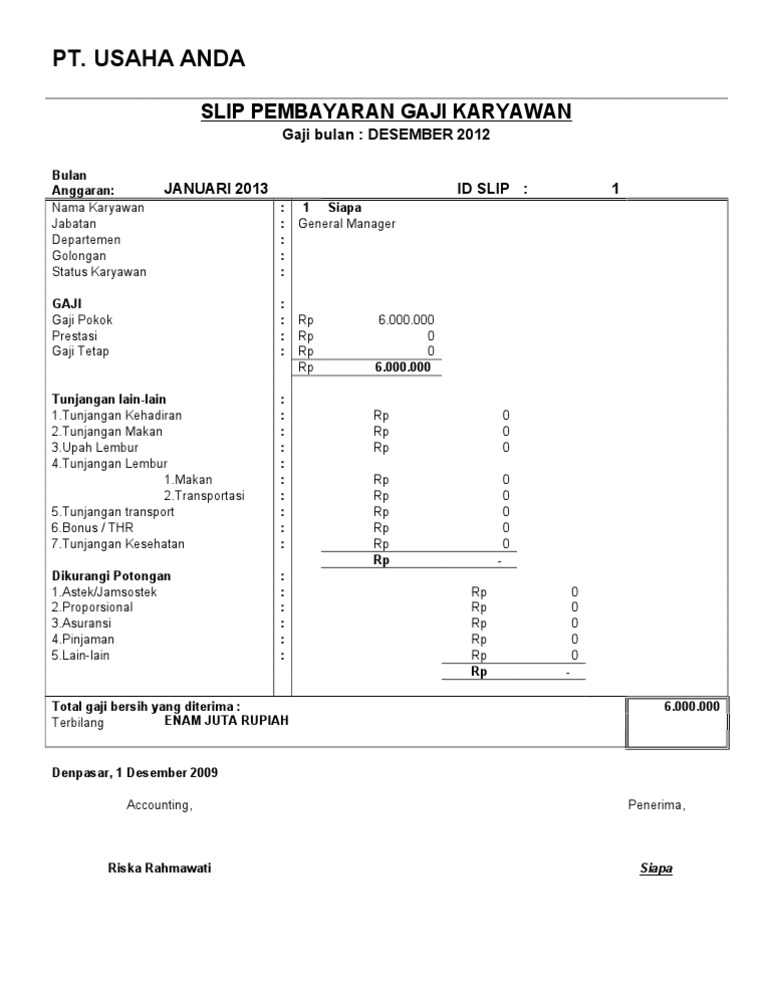 Format Slip Gaji Karyawan Lengkap Dengan Contoh